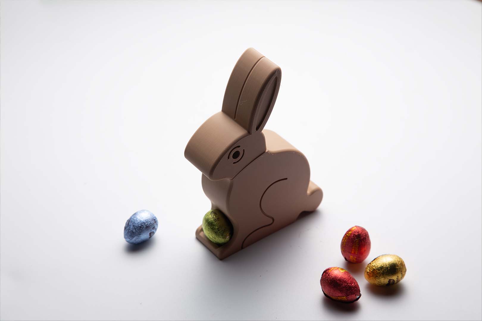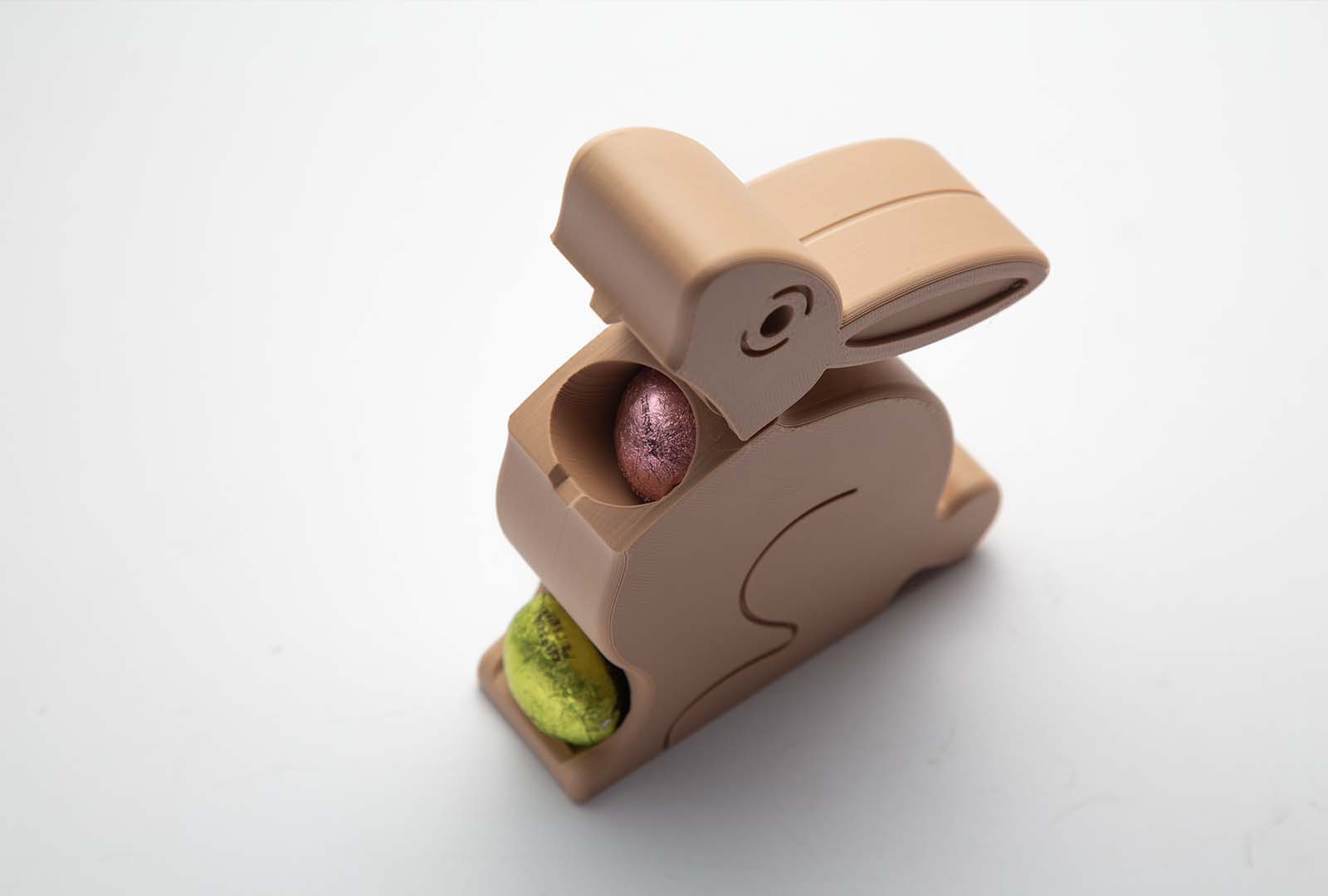 ( Source of design files: https://cults3d.com/en/3d-model/home/easter-egg-dispenser-bunny )