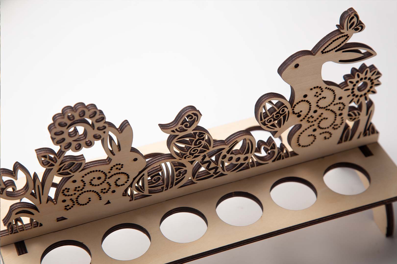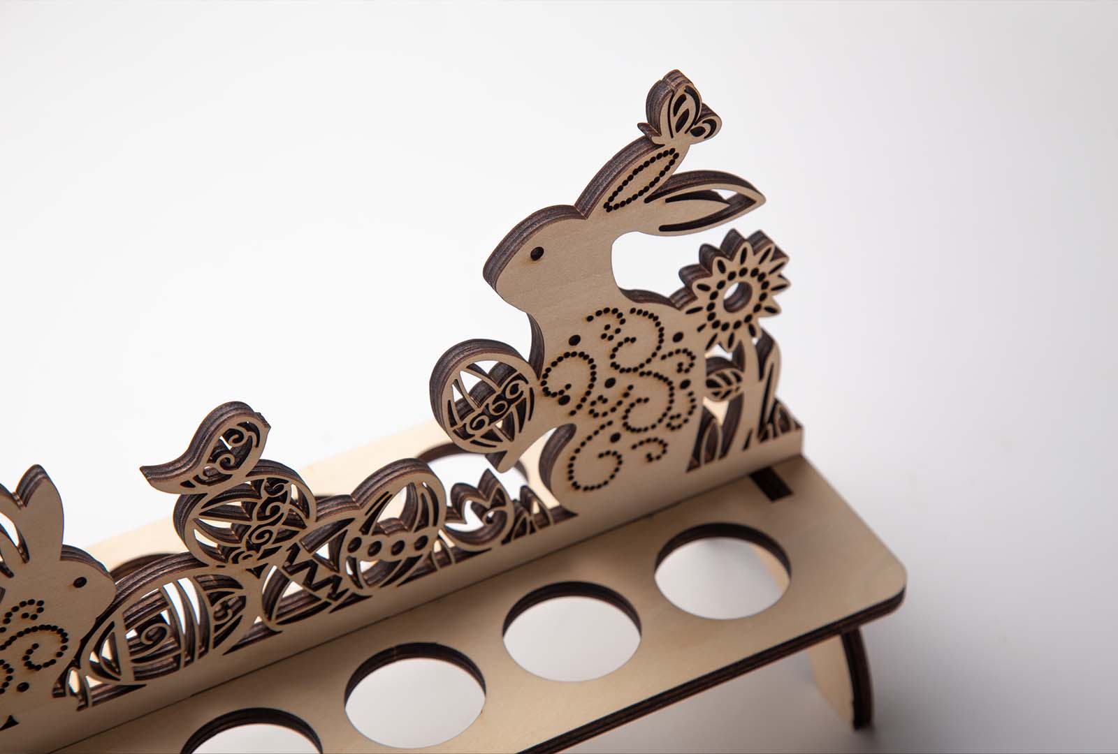 Once the hunt is over, display your most beautiful eggs on custom laser-cut stands. These decorative pieces showcase eggs of all sizes, from tiny quail eggs to large goose eggs or their artificial counterparts. The stands can be designed with spring themes like flowers, rabbits, or abstract patterns that complement your home décor.