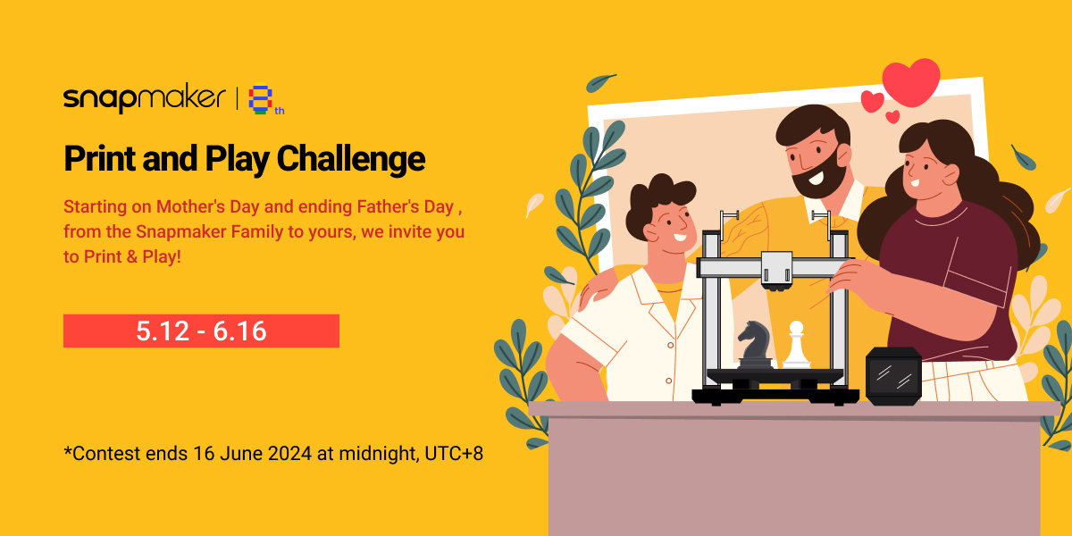 Join the Print and Play Challenge, which runs until June 16th (Father's Day): https://snapmaker.com/events/the-print-and-play-challenge