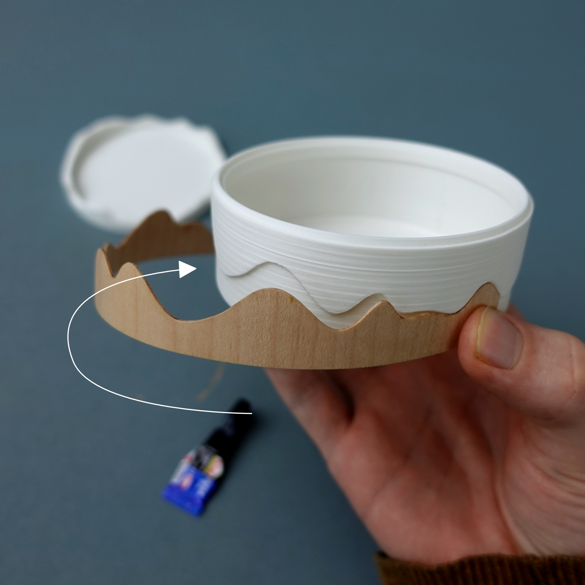 3. Glue the rim to the base. Then, a beautiful box with a pattern of undulating hills is done!