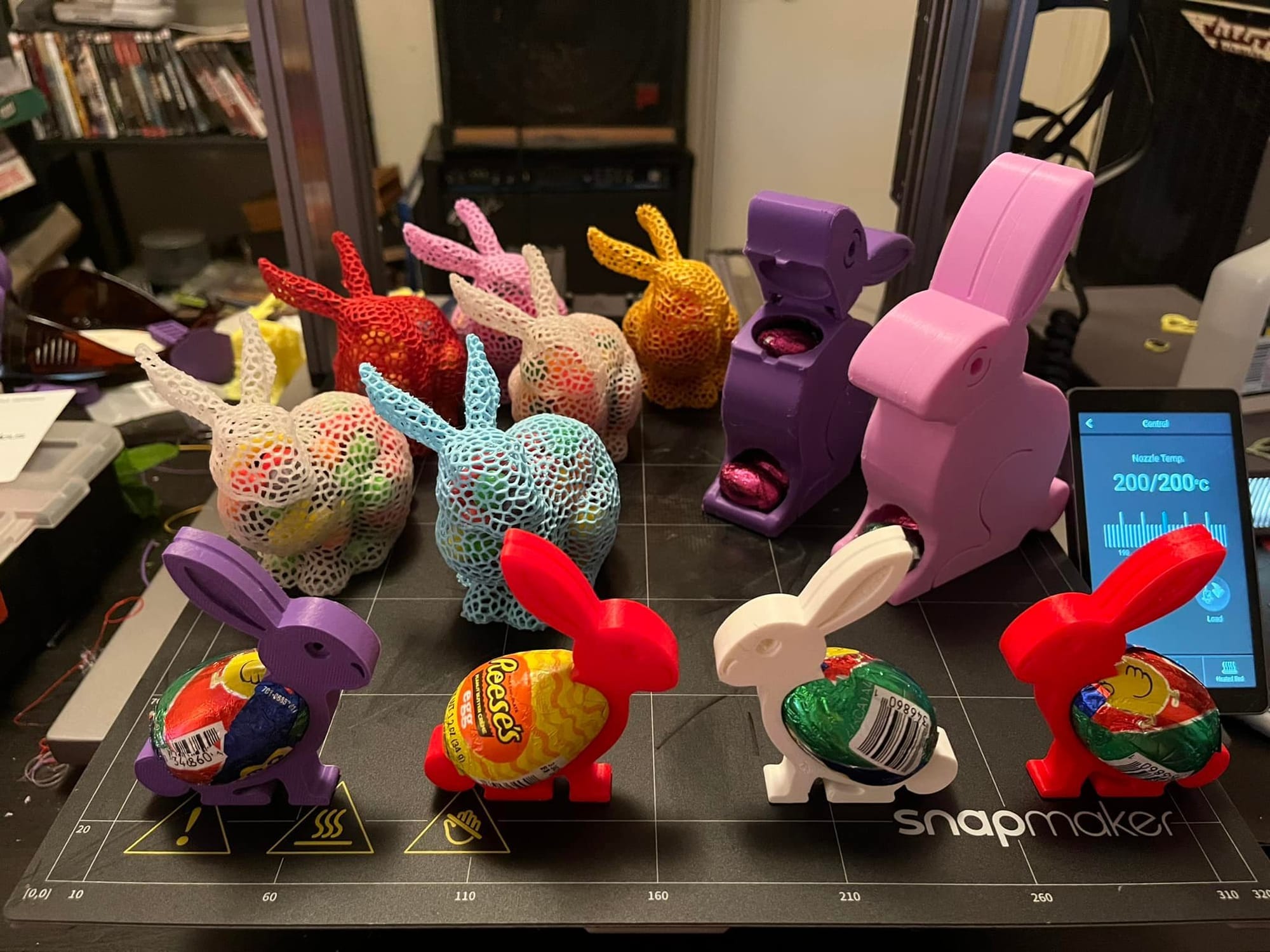 - Maker-Made Toys: Colorful articulated 3D prints (like flexi-bunnies) or intricate hollow 3D-printed eggs. With a high-speed CoreXY machine, churning out a fleet of these colorful desk toys takes a fraction of the time it used to.