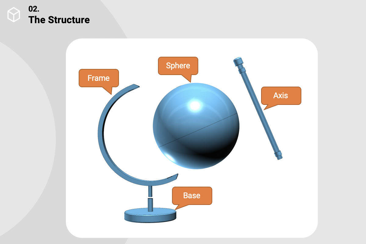 After the students figure out all the above questions, we can start the design. The globe can be divided into the following parts. Today we will use the sphere as an example and show you how to teach students to design.
