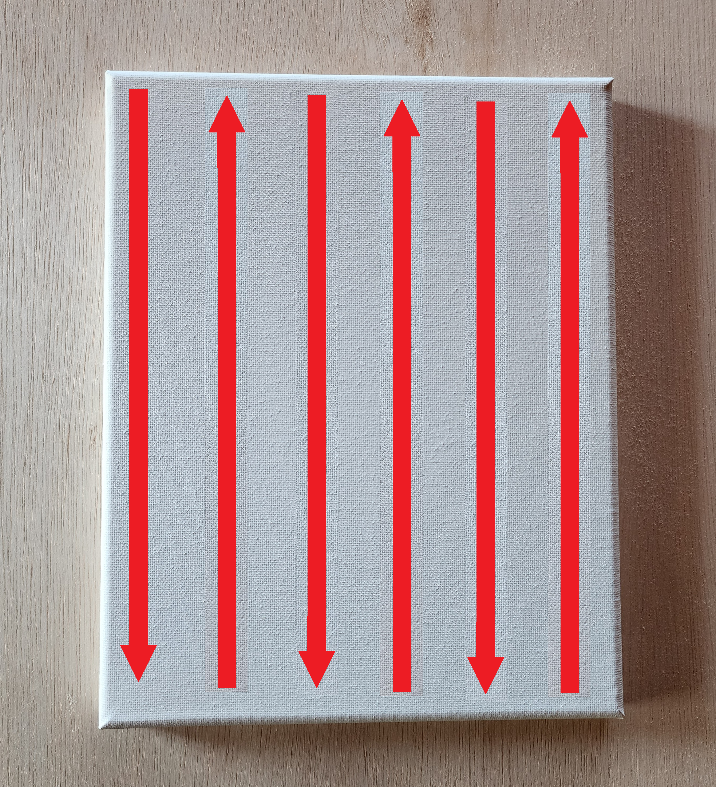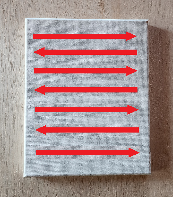 After having applied one or two layers of your base paint on the canvas, you can now apply your first layer of the colored paint that you chose and let it dry completely. As mentioned above, use the same method.