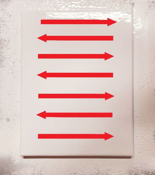 Prepare the canvas by applying one or two coats of your base paint (I recommend flat white to help the color stand out) on the canvas and let it dry completely. For best results, you should apply one layer of paint in two directions, from a distance between 6-12” above the canvas, in smooth, thin applications. This will ensure a nice even finish. You should apply your first thin application on the canvas in a vertical motion, moving across the canvas from left to right, then apply another thin layer in a horizontal motion across the canvas from top to bottom. Depending on what type of paint you choose, drying times can vary. Most aerosol paints typically dry in 15 to 30 minutes.
