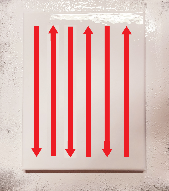 After applying your third layer of the colored paint on the canvas, you can now apply your final top layer of the paint color that you chose (in most cases black is a suitable color for first attempts) and let it dry completely. As mentioned above, use the same method. This is the final layer, so for best results, I suggest looking at the top of the canvas, at eye level, and look for any dry spots. With light shining above the canvas, you can see the wet paint shimmering from the light. You can easily identify if there are any unpainted areas, as there will be a dip/dry spot in the wet surface. As stated, depending on the paint you choose, drying times can vary, and most aerosol paints typically dry between 15 and 30 minutes.