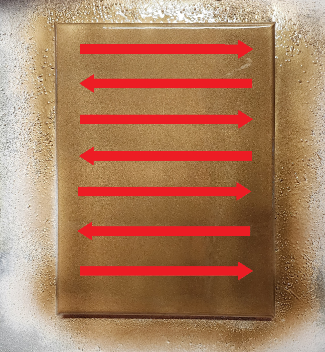 After the engraving is done, remove the canvas from the laser and wipe it with a water-dampened paper towel to remove all residue. Then, wipe it with a dry paper towel to remove the leftover moisture, and let it dry. You may need to repeat this process a few times until you get your machine settings dialed in.