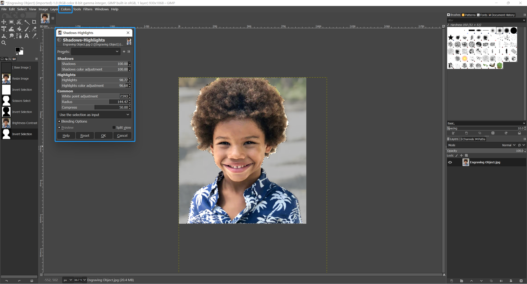 After adjusting the shadows and highlights, the overall color of the subject appears bright. But this is still not the final effect we want. To make a distinct engraving, we need to make the edges more clearly defined.