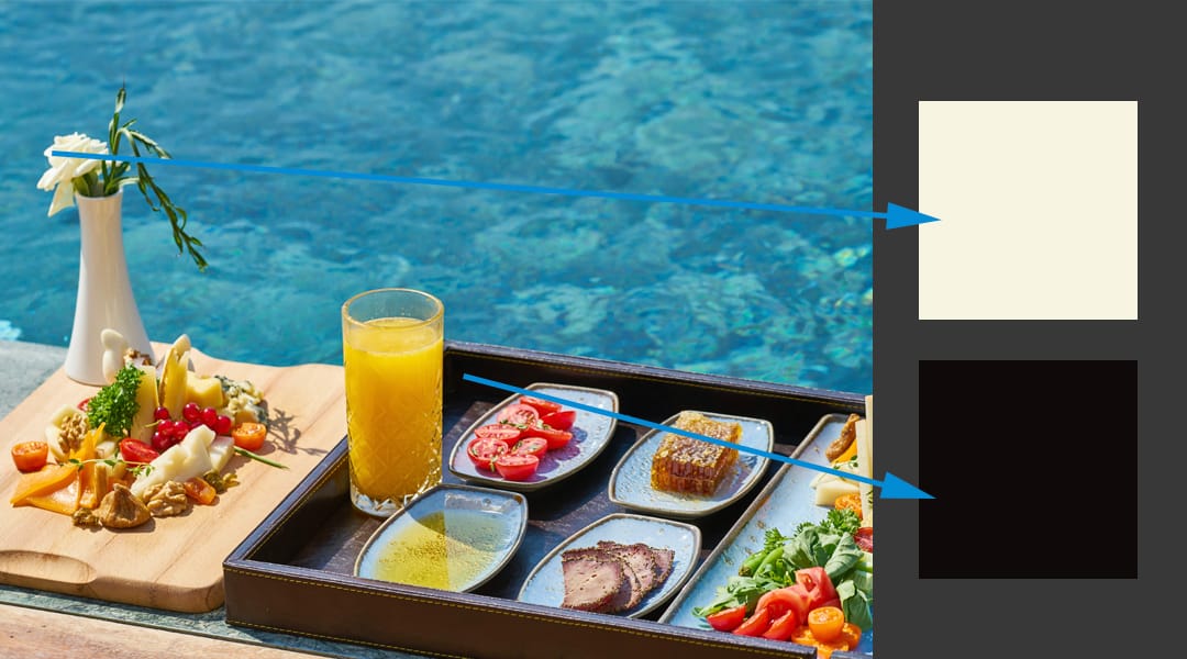 (2) Respectively cut out small squares of the lightest and the darkest areas from the selected picture. Then, juxtapose the light and the dark squares, so that you can easily see the contrast.