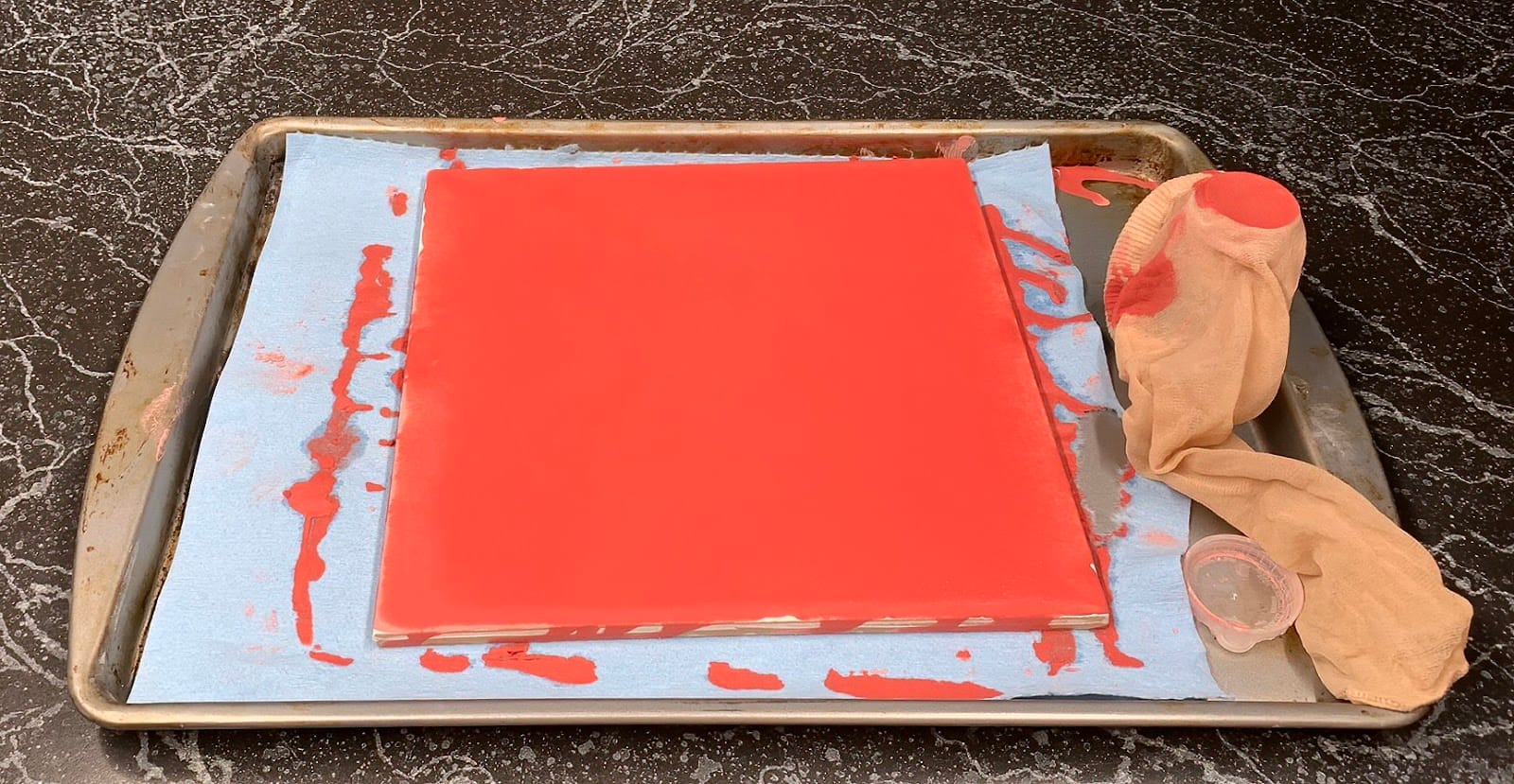Wipe the excess of dried slurry with a wet cloth or paper towel and discard it. Wash the tile with water and dish soap, then rinse it with water. Let the tile dry at room temperature from both sides.