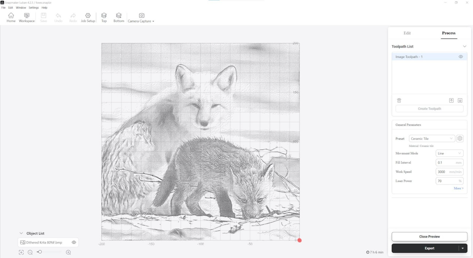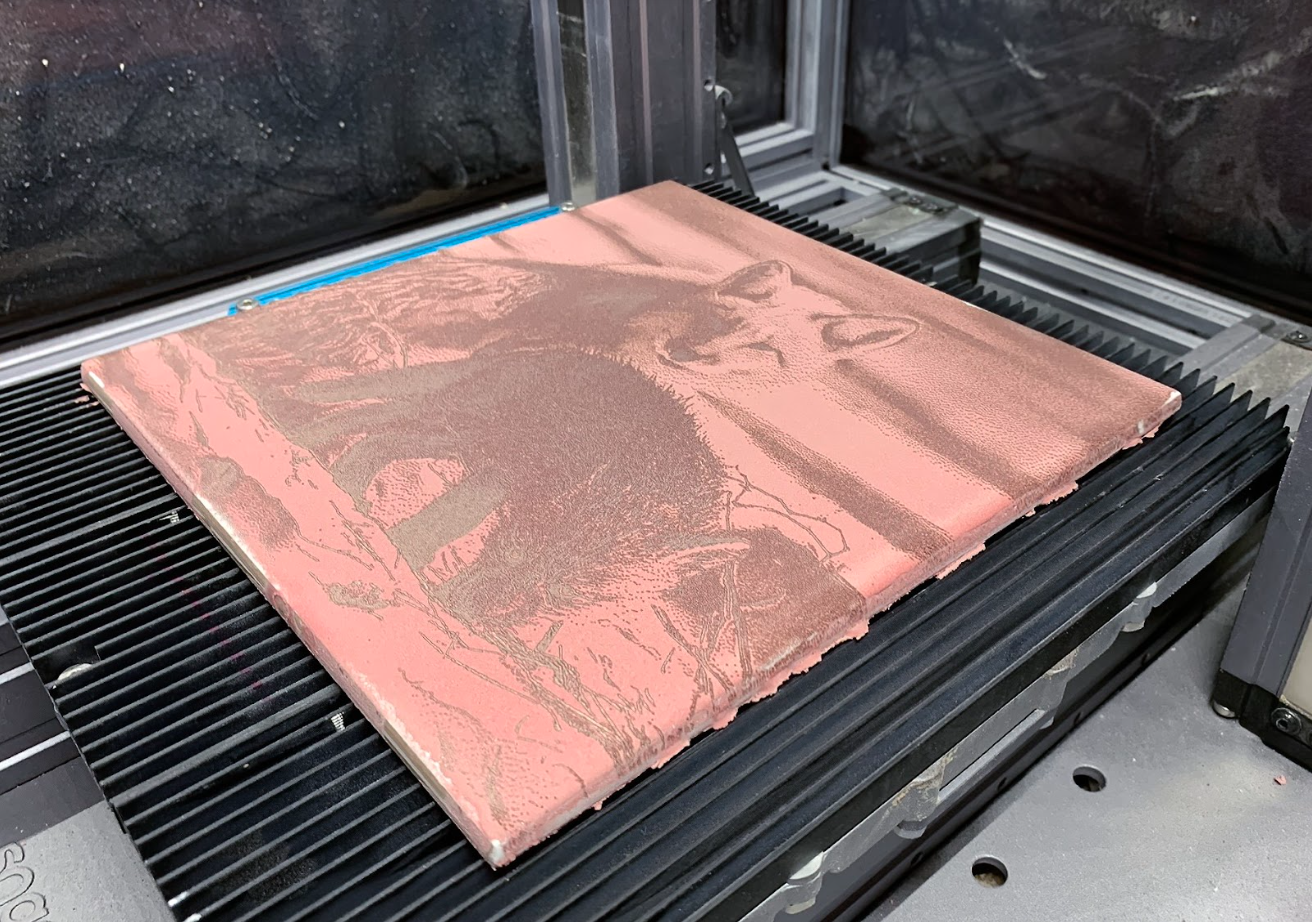 After that you can export the toolpath to the Snapmaker Luban Workplace, transfer the file to your instrument over Wi-Fi (recommended), adjust the origin point and start the process. For this particular picture on a tile of 200 mm × 200 mm, it took around 7 hours.