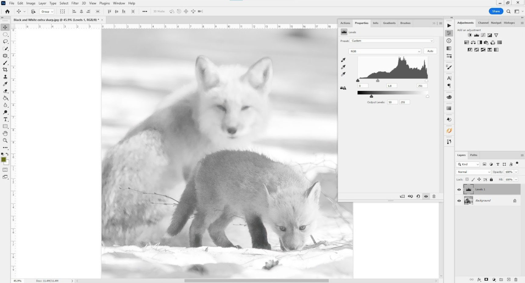 Please note that it is normal if the photo before final levels adjustment looks oversharpened.
