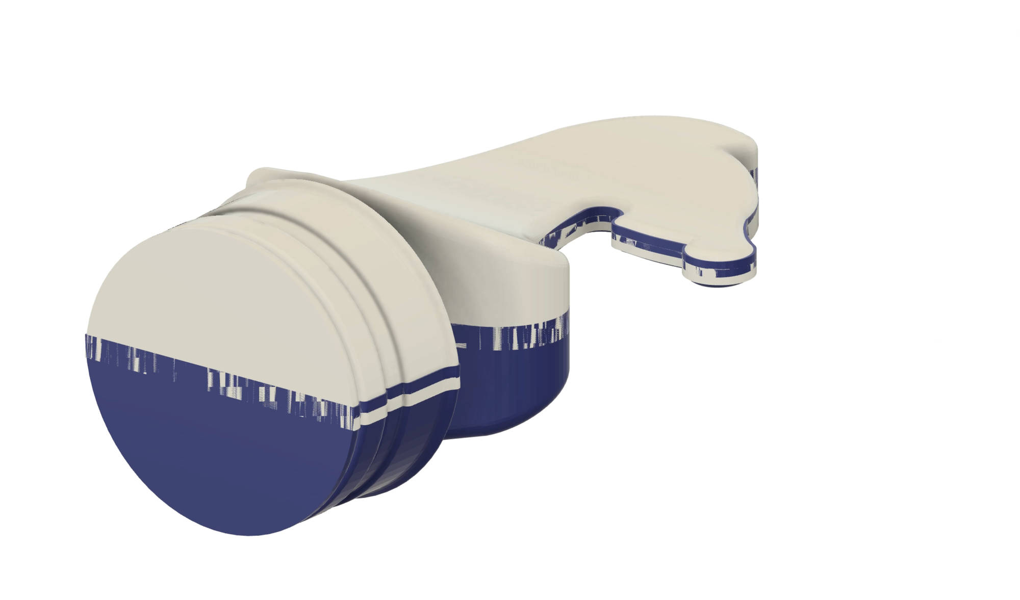 In a 3D milling process with the rotation module, a slight deviation between the zero point in the software and the point at which you actually zero can cause your finished object to be stretched or compressed. In the example below, you can see what would happen if your zero point had a z-coordinate that was too low. The two halves are now pushed into each other and the figure appears compressed.