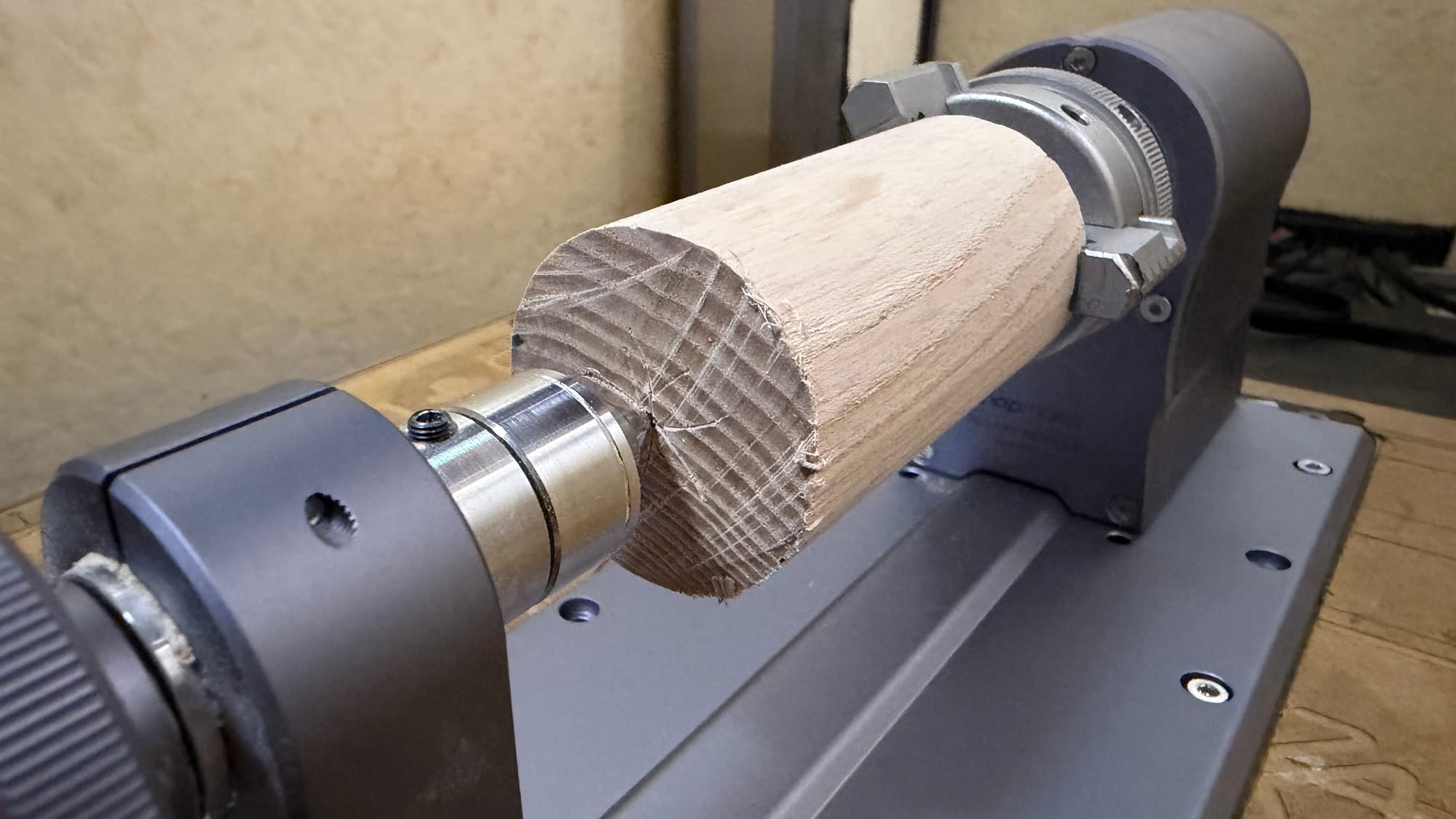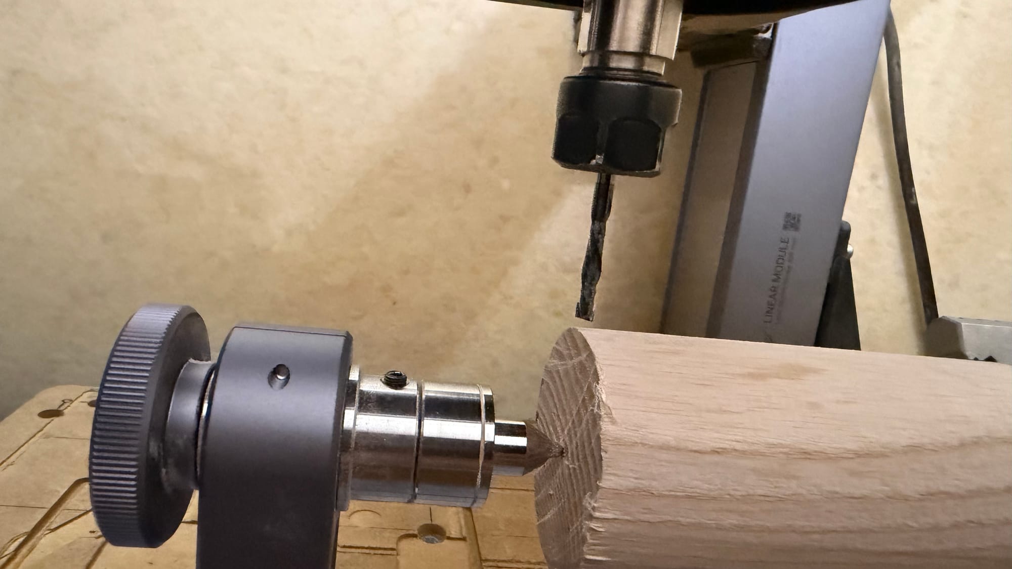 Some of you may be wondering why I don't just set the origin at the surface of the stock material. The problem is that this only works if you clamp your stock material perfectly straight and the blank is also perfectly flat and evenly machined. For example, I used wooden cylinders. If these are not perfectly round, it won't work.