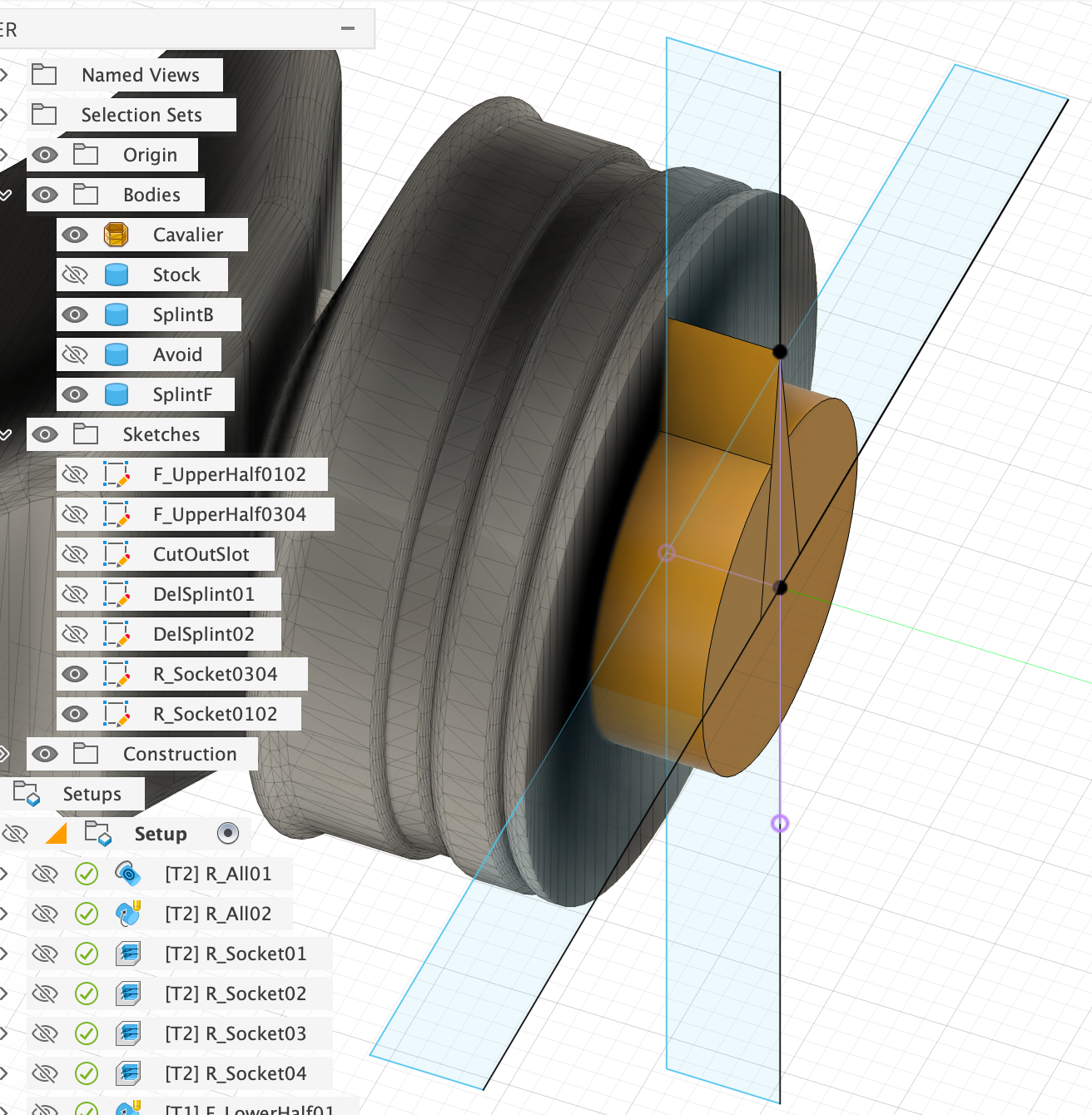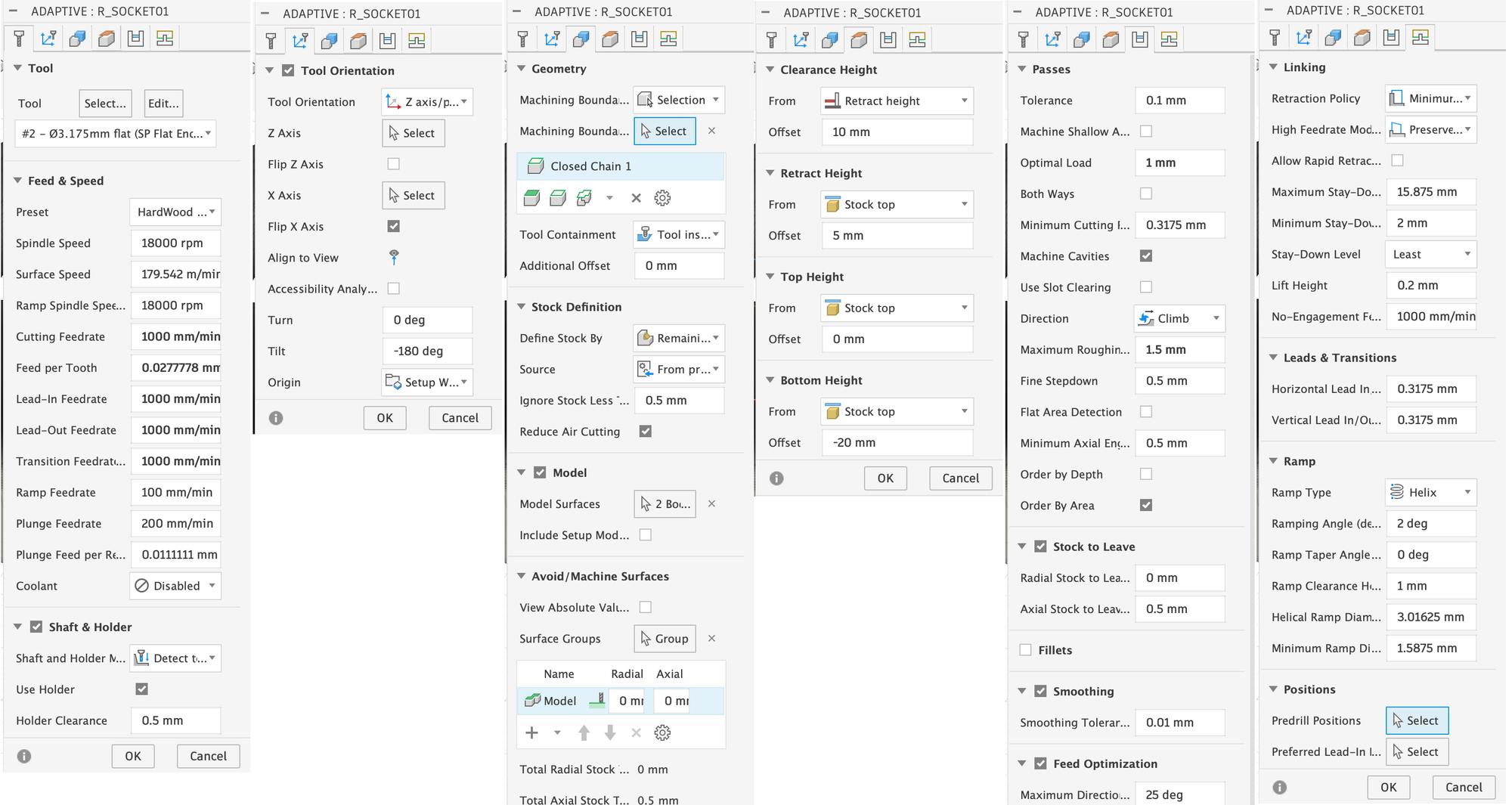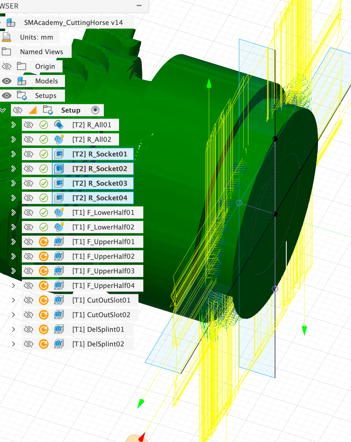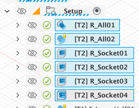 Since in this case we want to mill down to the model, we have to limit the milling process with the help of the sketches shown ‘R_Socket…’, otherwise Fusion will try to completely machine the rest of the horse as well. Using the example of the first clearing process ‘R_Socket01’, I will show you below where you need to set this: