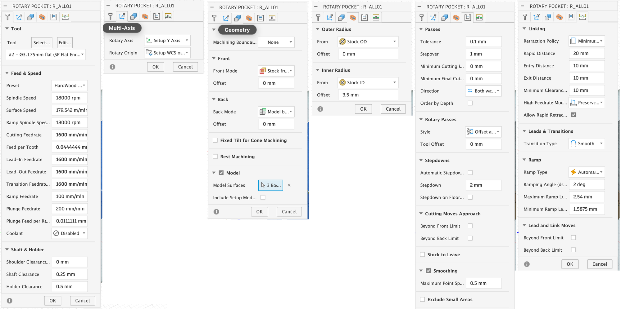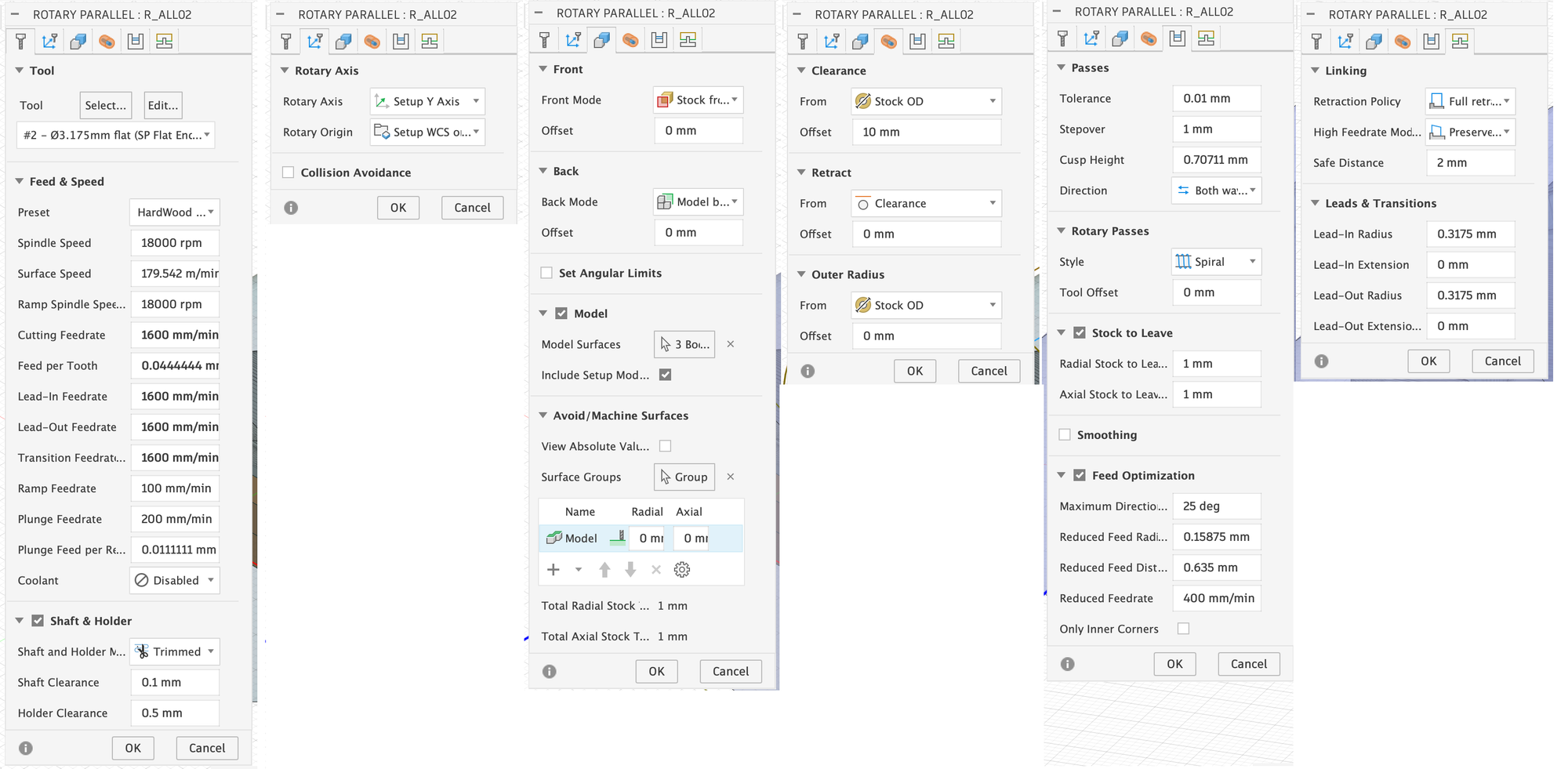 Below, I will show you the settings for the first Rotary Parallel milling operation, which uses the virtual flat end mill, so to speak: