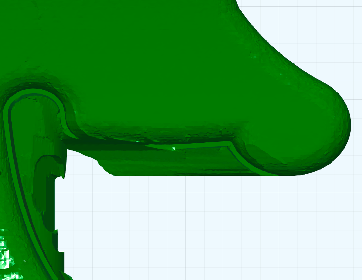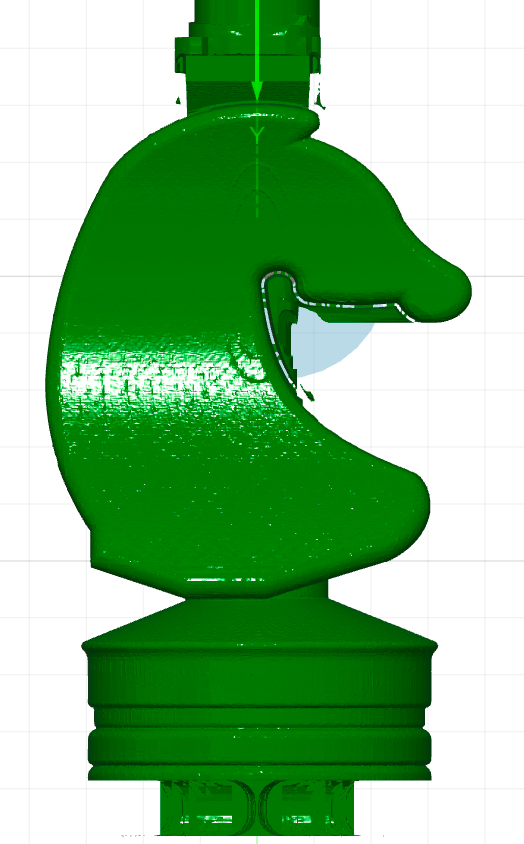 In the case of the horse used here, we could stop now. The two splints ‘SplintF’ and ‘SplintB’ could simply be removed with a saw, as they are attached to smooth surfaces, and the areas could be sanded down by hand. However, the other figures have a ball or similar shape on their heads, which is difficult to achieve with a saw.
