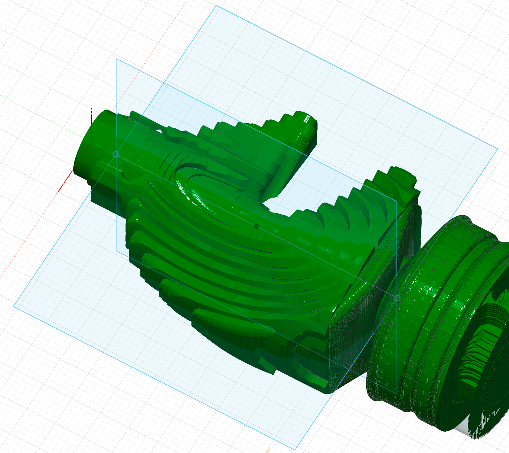 But if such problems can arise, why should the Rotary Parallel method be used at all? Of course, the base can also be finalized with, for example, an adaptive clearing process from above, below, left and right. The problem, however, is that this can lead to even more unpleasant problems if your axis of rotation was not perfectly aligned or you did not zero perfectly. In this case, you will always get a small visible edge or line where the areas processed by the four operations meet. Sanding this away by hand later can be very difficult.
