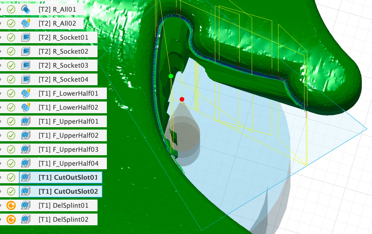 We do the same with the operations for fine finishing with the V-Mill and once with those for removing the front splint: