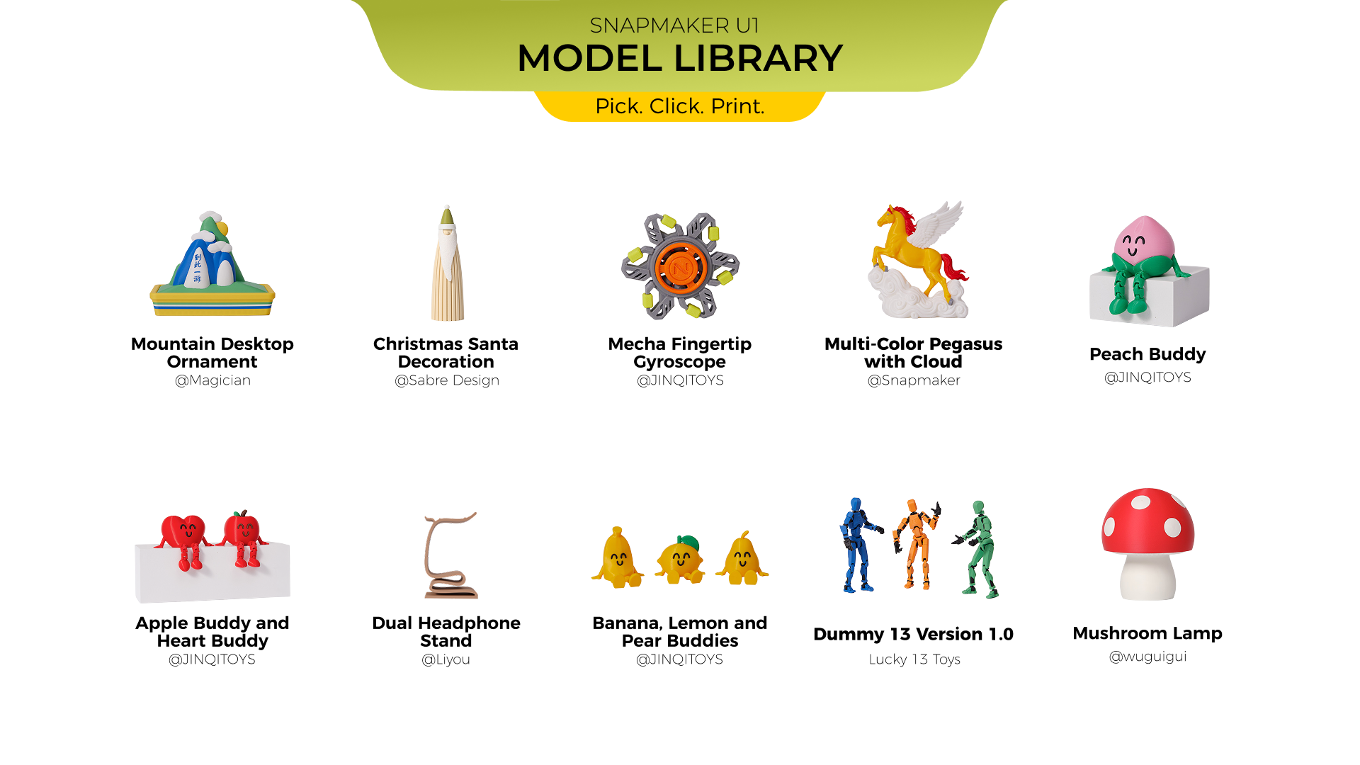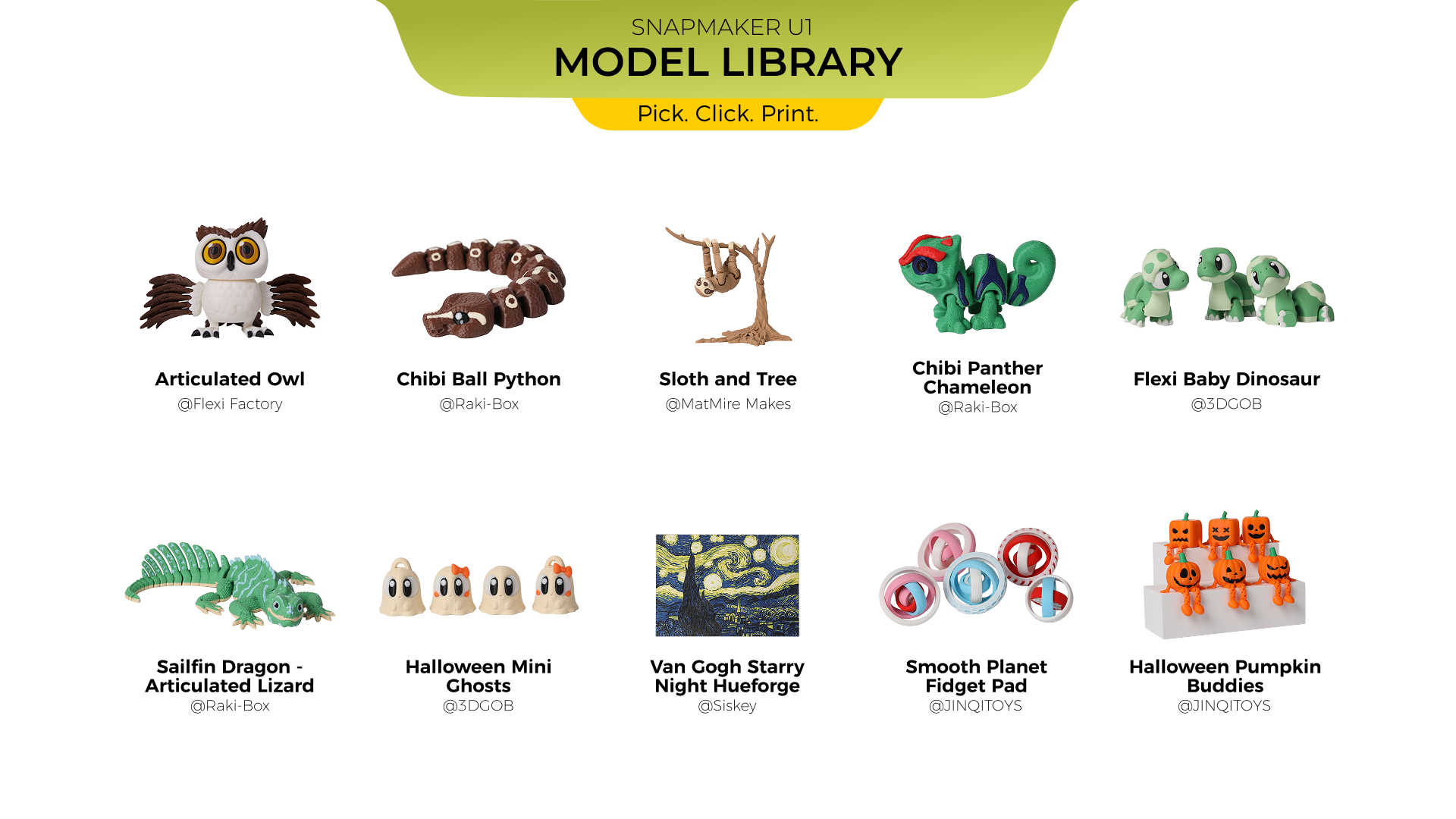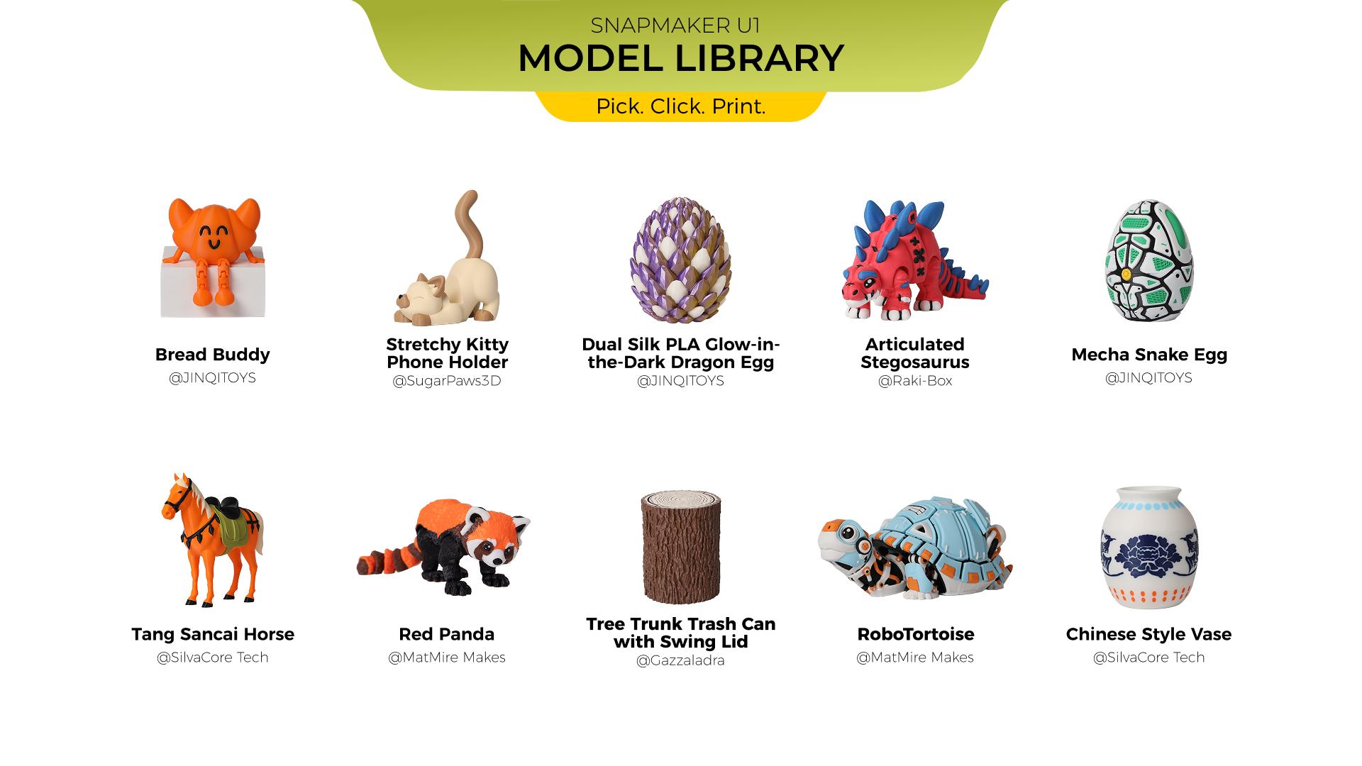 Last week, we introduced the Snapmaker Model Library — a curated collection of 30 print-ready models, built directly into the U1 experience. No slicing. No setup. Just pick, click, and print.