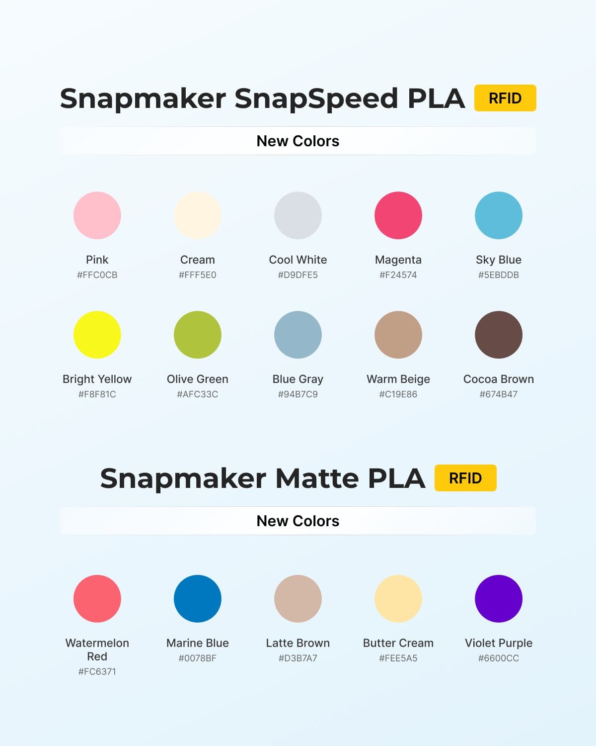 We’re also expanding the material ecosystem with 15 new RFID-enabled filament colors, across: