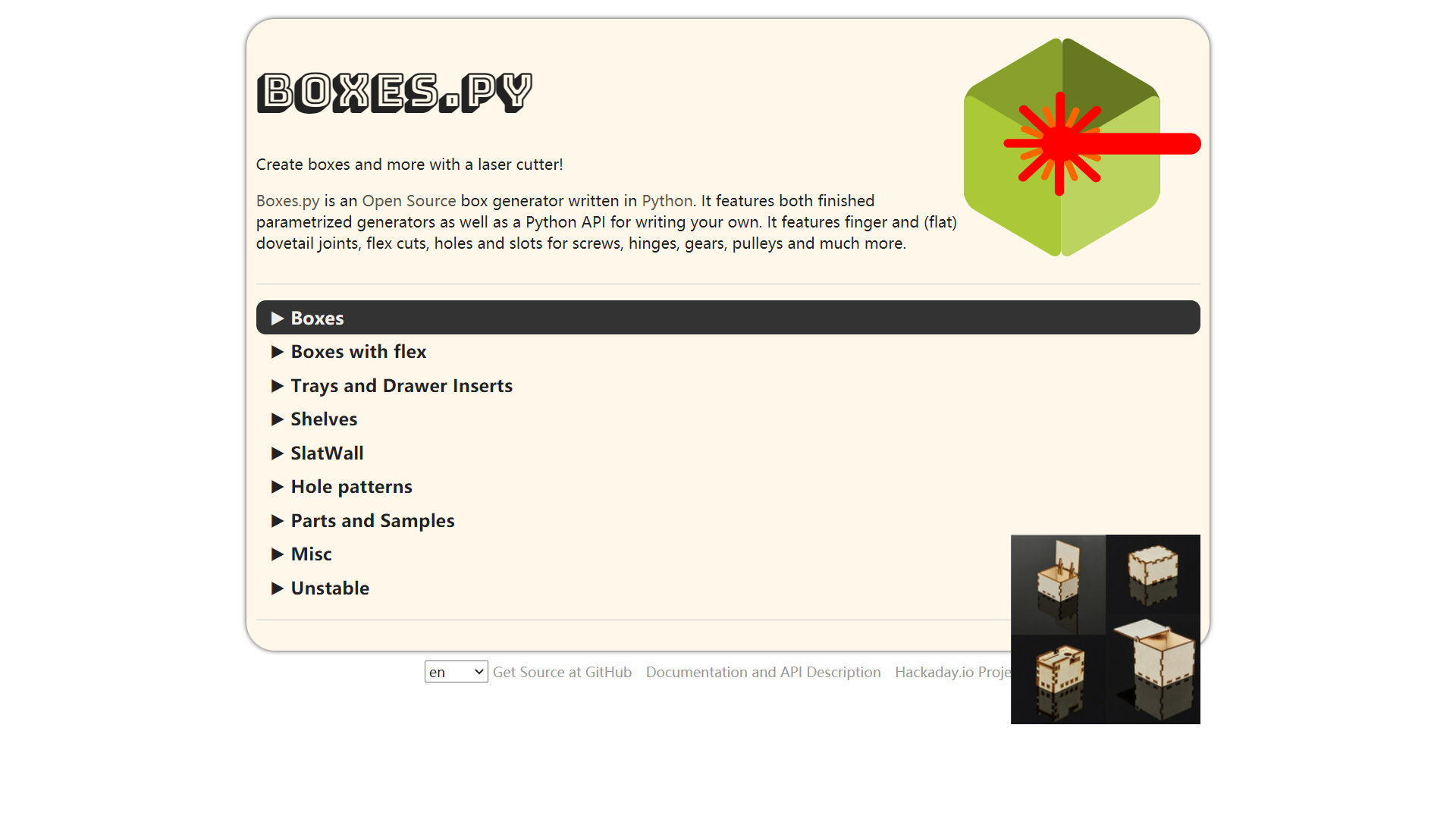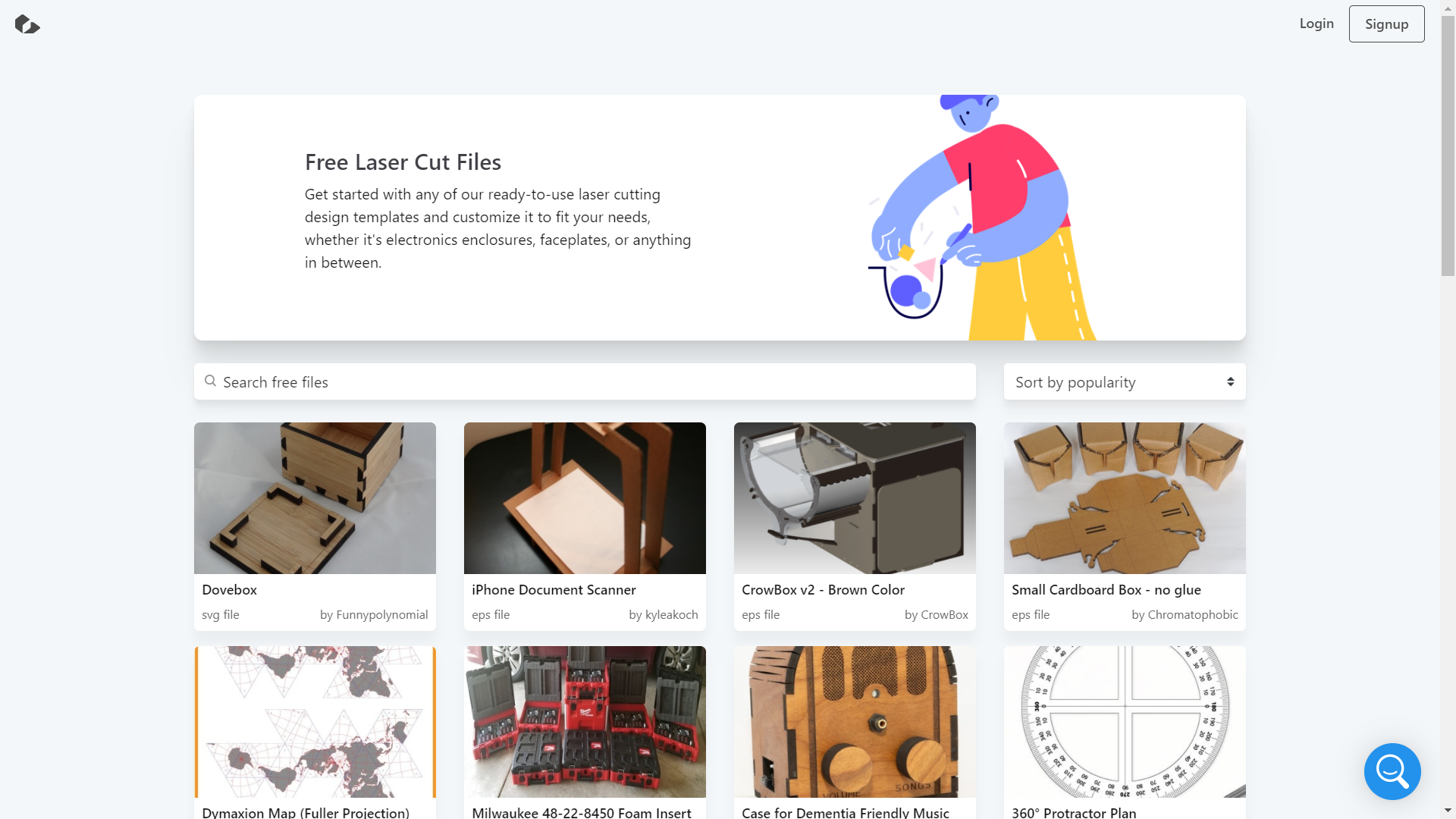 Free Patterns Area offers a collection of vector files and laser cutting templates. The website divides its resources into two categories: 3D project files and 2D vector files. 3D project files can be used to create 3D objects through laser cutting and assembling. 2D vector files are relatively basic graphics. You can choose templates from easy to complicated based on your need. Besides, this website also contains free software resources for you to download and edit your designs.