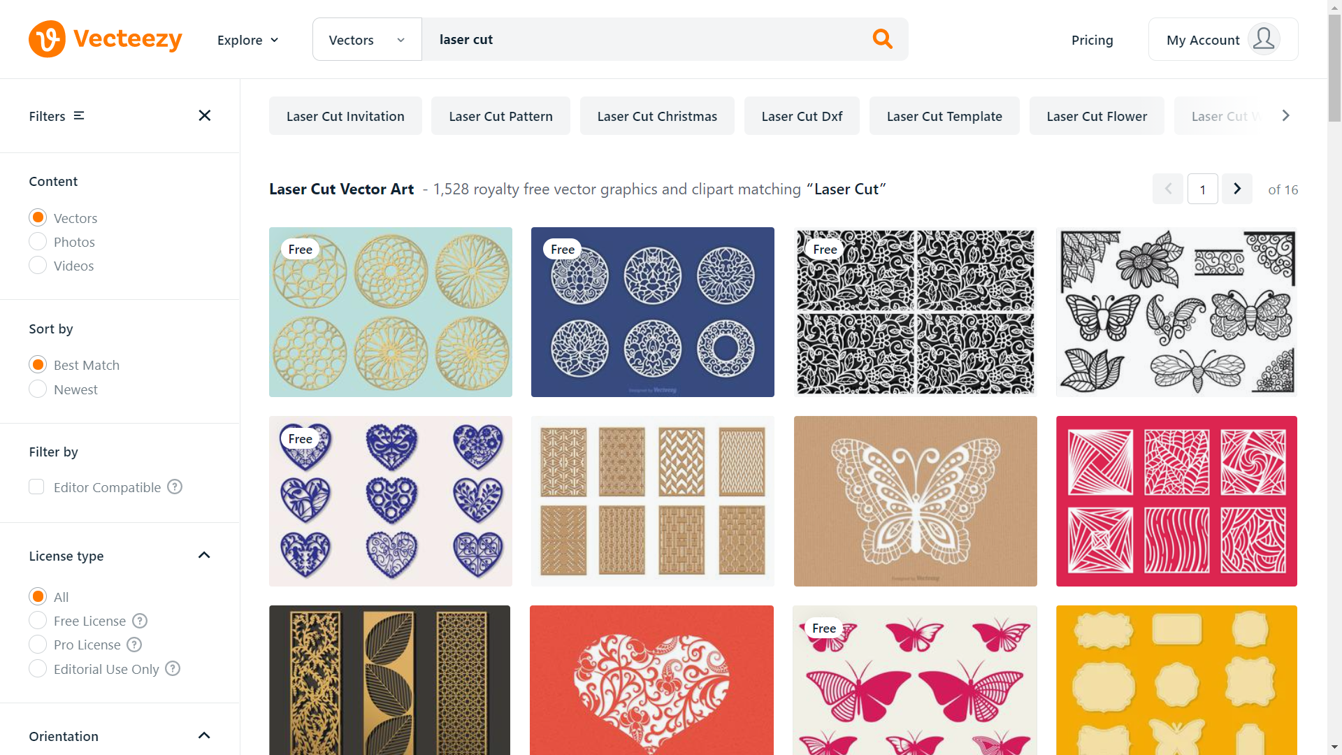 Vecteezy is a large community for design and creation sharing. It boasts rich vector, bitmap, and video design resources, involving a wide range of themes such as backgrounds, characters, nature, travel, and food. Most of its designs feature a bright and vibrant style. To manage its massive resources, the site supports searching and filtering. For example, you can search for “laser cut” and set vector as a filter, then you will be able to find a large number of vector files for laser machining.