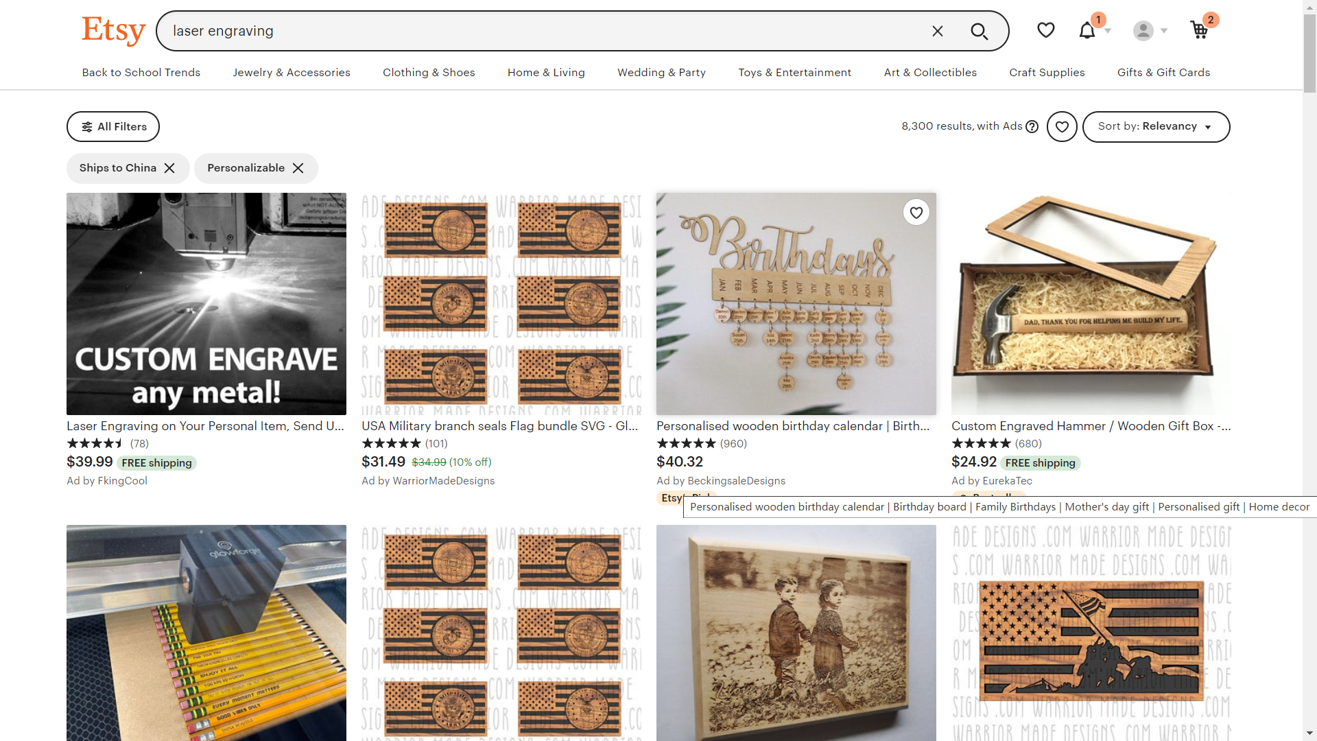 Etsy is a global online marketplace focused on handmade items and craft supplies where you can find a large variety of laser engraving and cutting templates. Type in “laser engraving and cutting” and click the search button, plenty of designs for laser machining will pop up within seconds. Click any design you like, and you will be able to see the template description as well as other customers’ reviews.