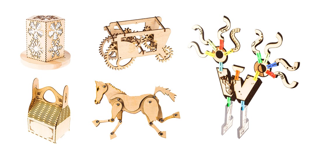 By using a laser engraving and cutting machine, you can not only engrave or cut materials based on 2D designs, such as pictures, patterns, logos, and silhouettes, but you can also create 3D objects, such as gift boxes, 3D puzzles, and lampshades.
