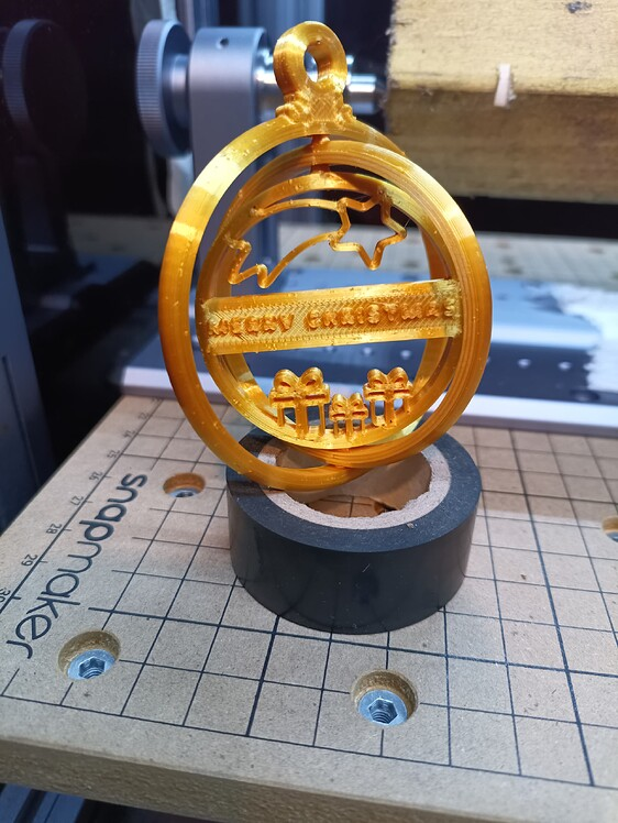 tyeth Christmas Presents are gonna be late this year, got to get used to the rotary + CNC first, but a couple of spinning christmas tree ornaments should tide people over until then…