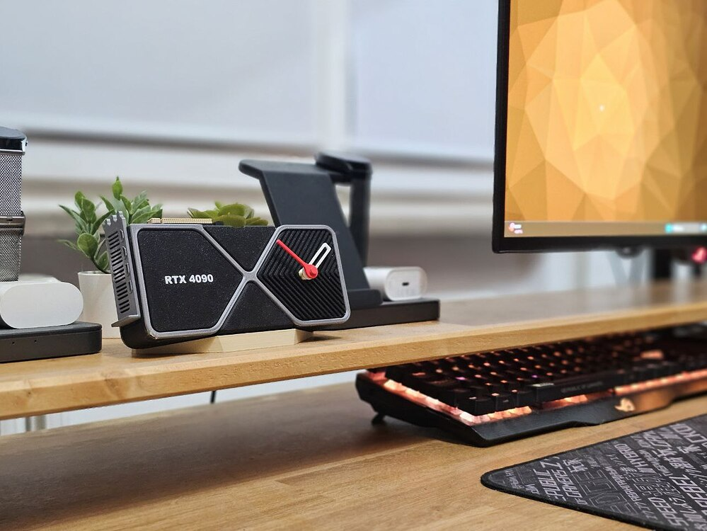 HexaTrick I’m HexaTrick and I wanted to share with you this model that I designed and printed. It will become a Christmas gift for a friend of mine who is passionate about computers and specifically the Nvidia brand. Another one will follow, which I will publish for a console enthusiast. I decided to model the famous RTX 4090 Founders Edition in this custom clock version. If you like it, I would love to hear what you think and if you believe it will be an appreciated Christmas gift.