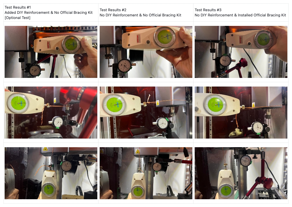 Open TestingTest Results #1Added DIY Reinforcement & No Official Bracing Kit [Optional]