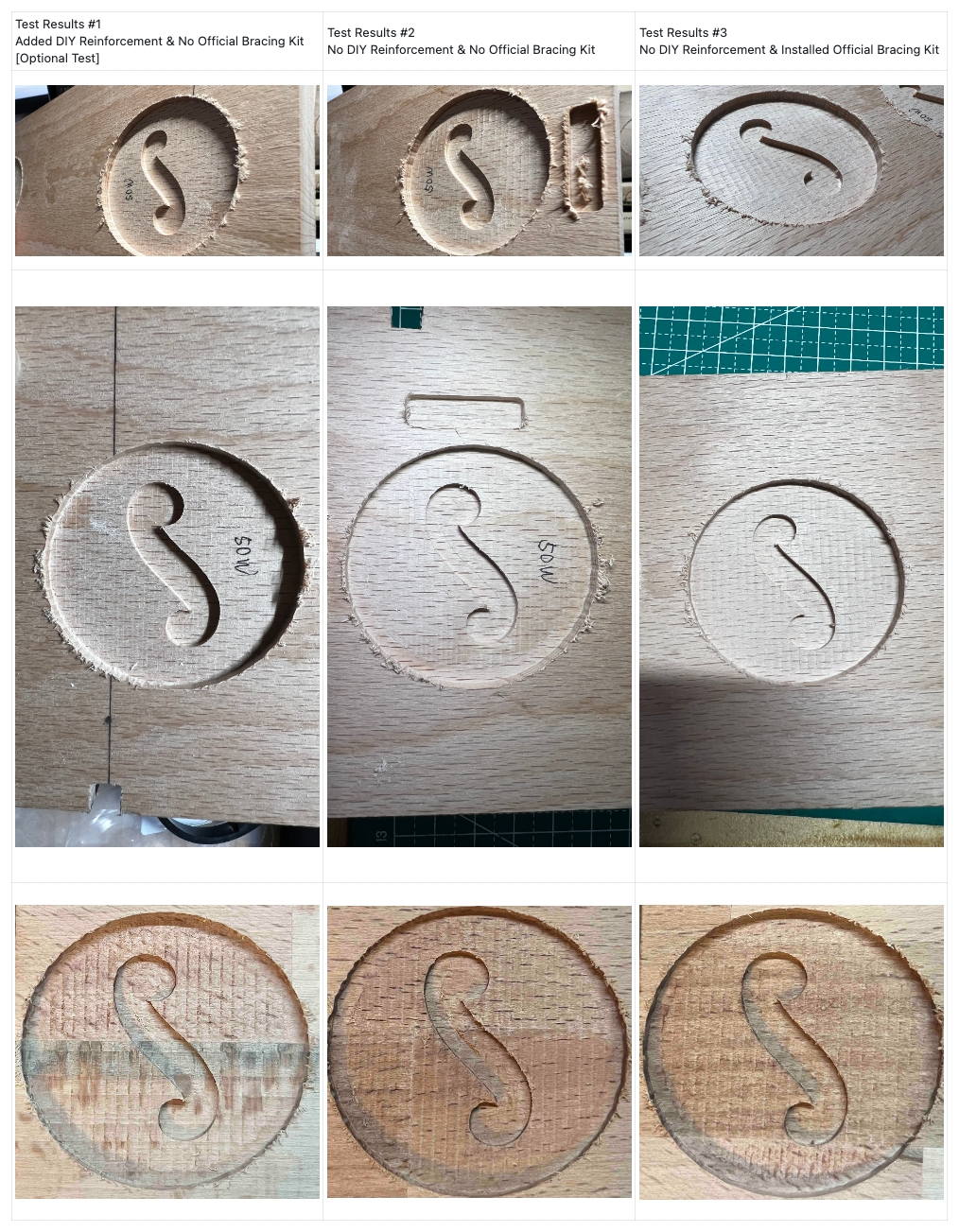50W CNC Machining QualityTest Results #1Added DIY Reinforcement & No Official Bracing Kit [Optional Test]